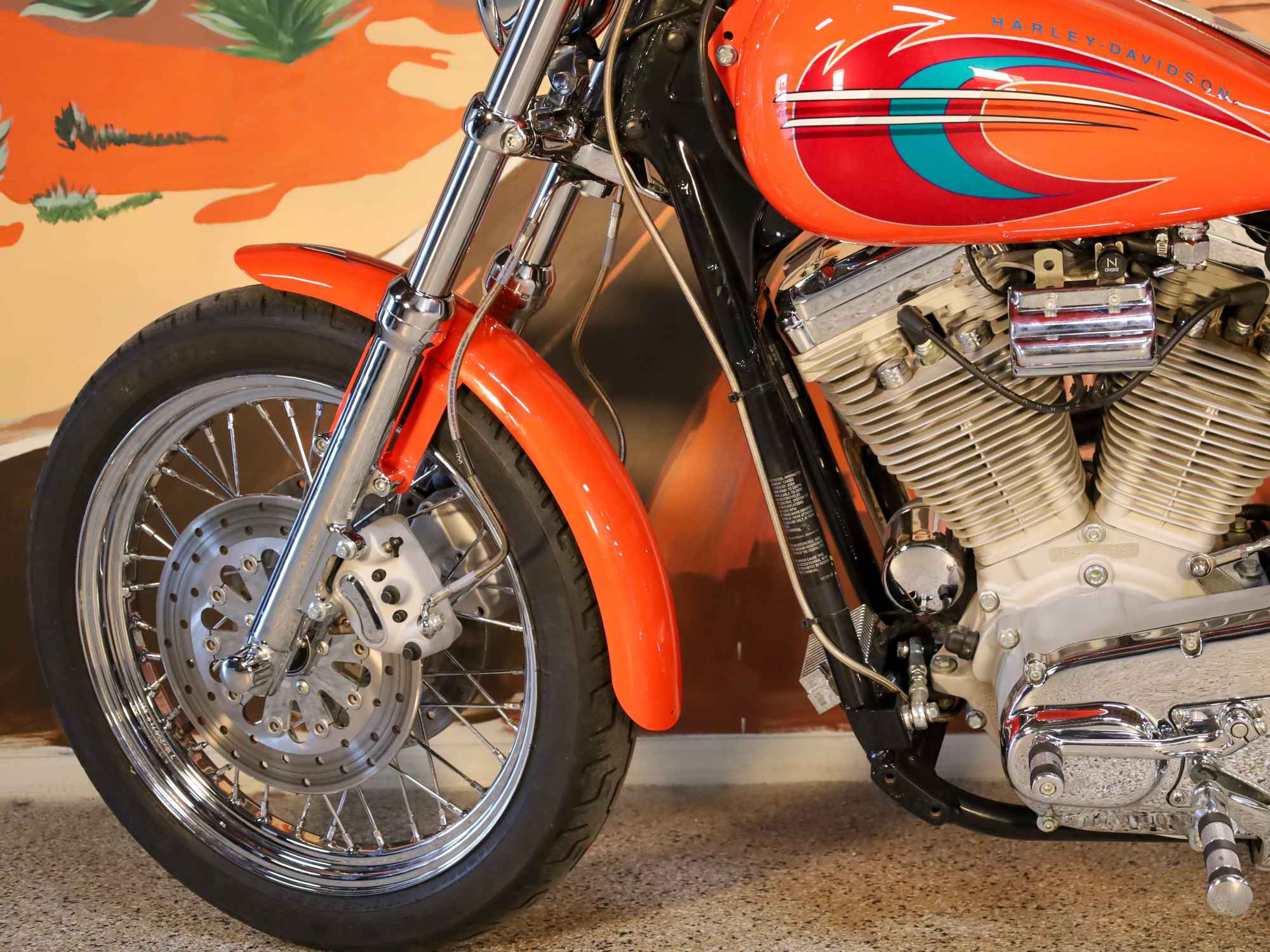 The Tangerine finish is deep and vibrant with factory multi color graphics that perfectly capture the early 2000s CVO energy. Every polished surface and brushed aluminum accent speaks to a time when Harley was building motorcycles with both performance and pride in mind.