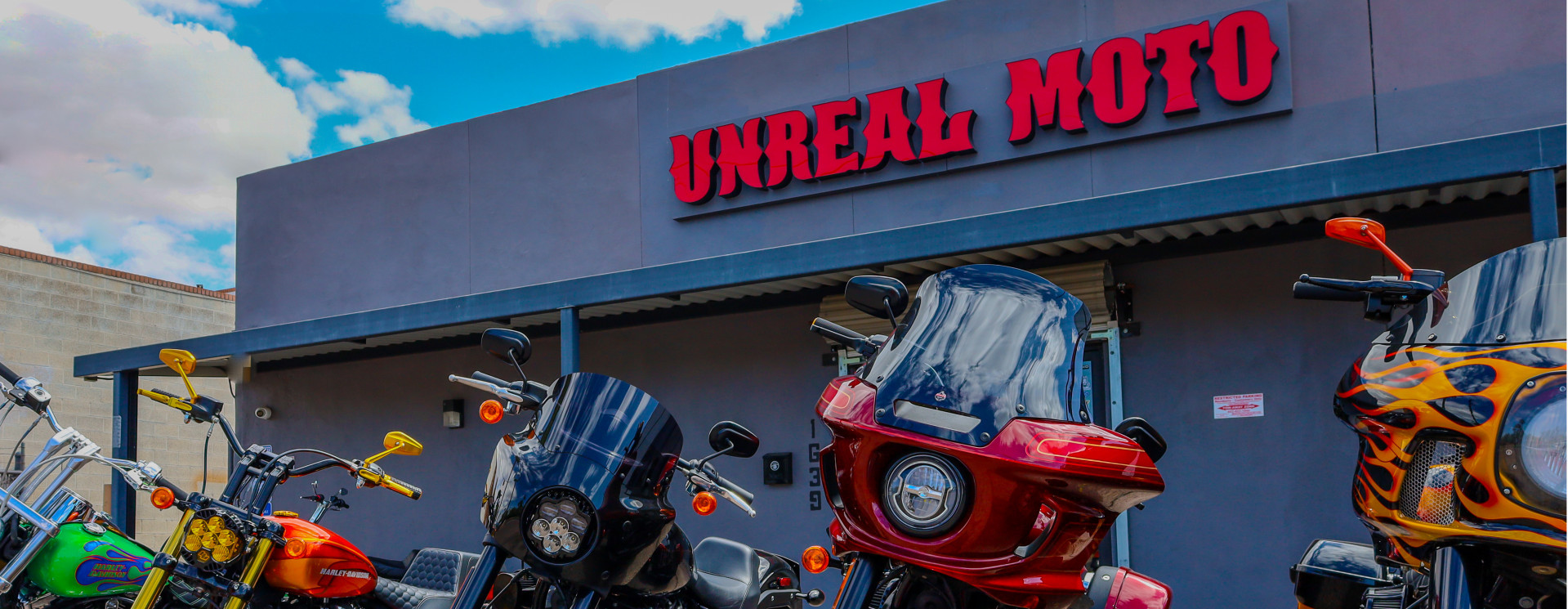 Based in Phoenix Arizona, Unreal Moto is an independent “mom n pop” licensed motorcycle dealer and service center specializing in American V-Twin Cruiser and Street models. From sales, to service and everything in between, Unreal Moto offers a full array of parts, apparel and merchandise.