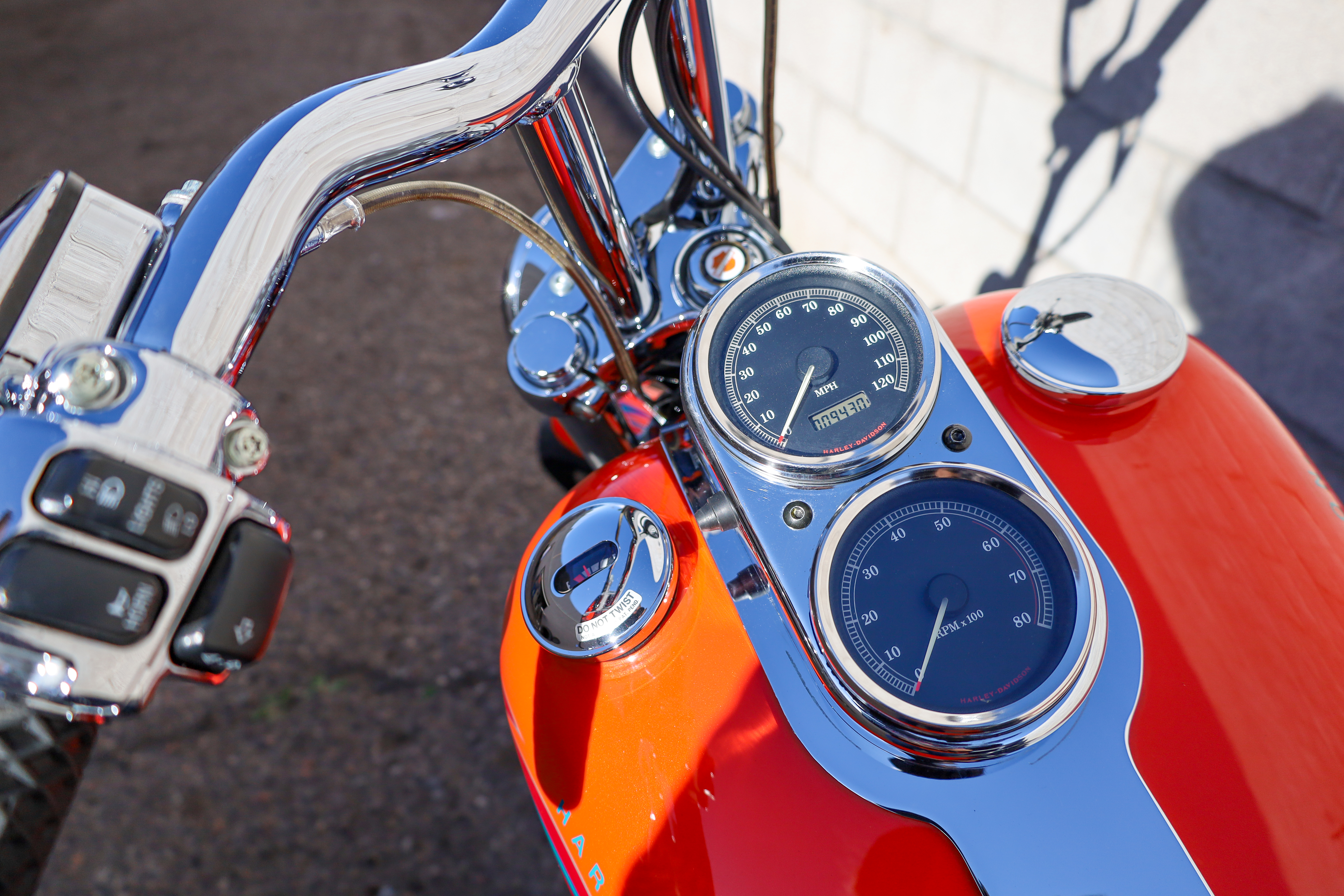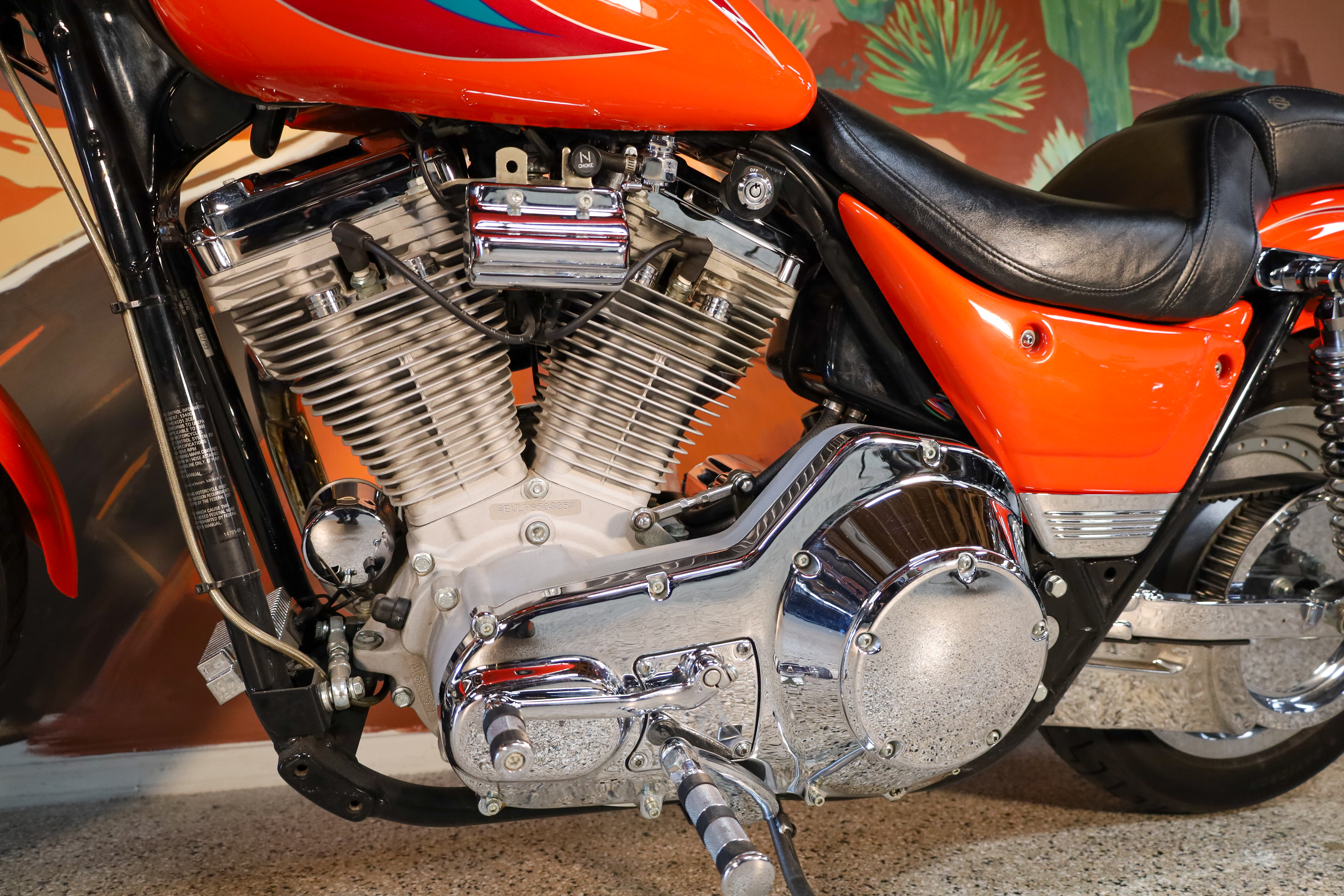 The Tangerine finish is deep and vibrant with factory multi color graphics that perfectly capture the early 2000s CVO energy. Every polished surface and brushed aluminum accent speaks to a time when Harley was building motorcycles with both performance and pride in mind.